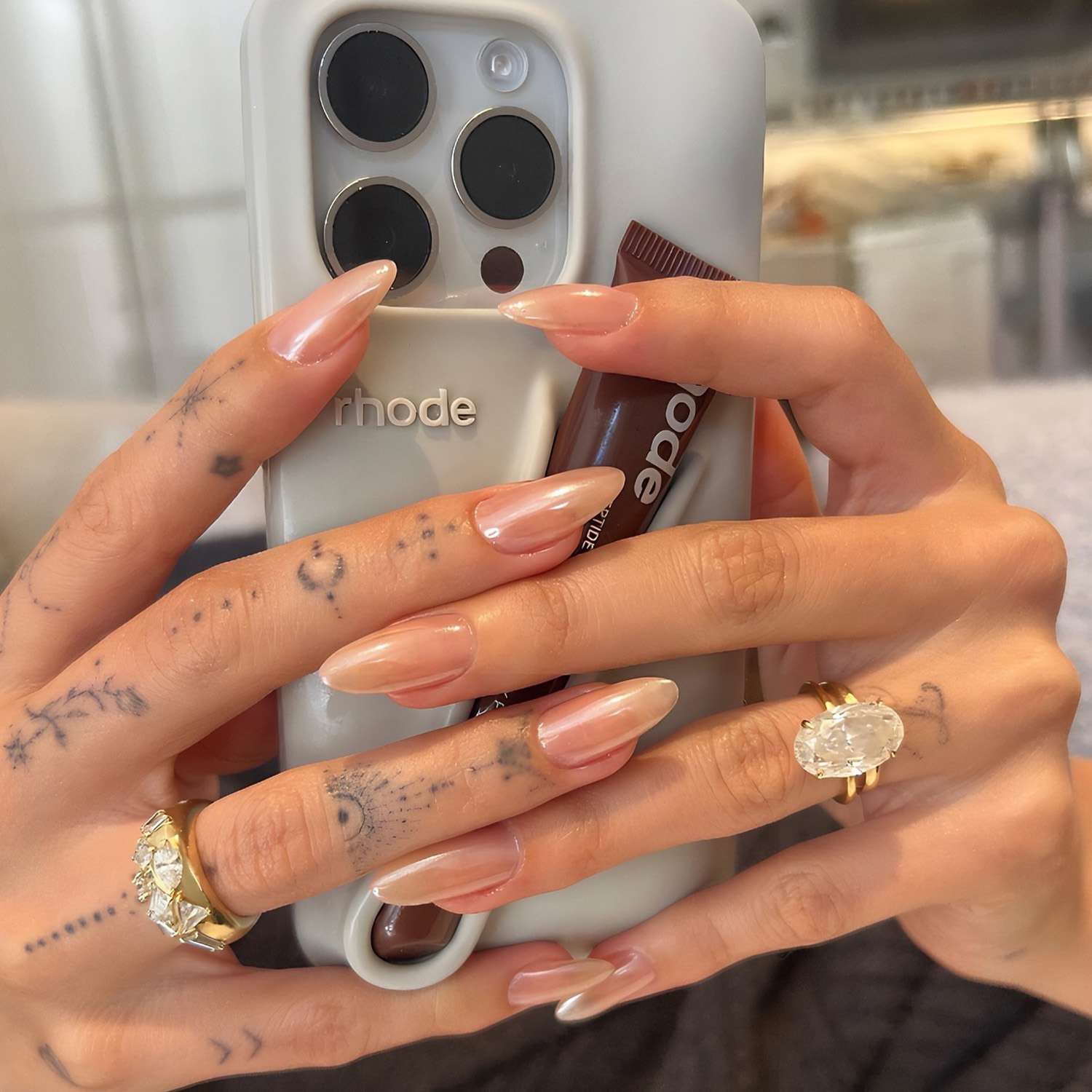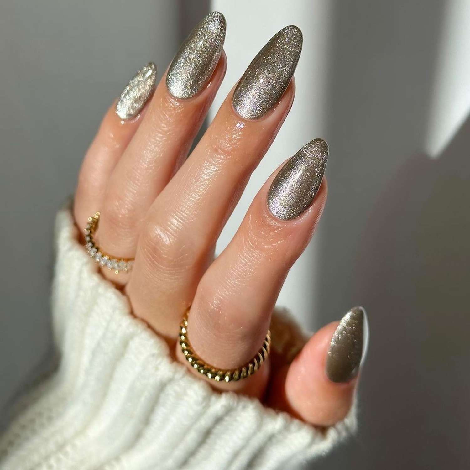 Why it’s trending: It’s more wearable than full chrome and feels like the adults-only version of shimmer nails.