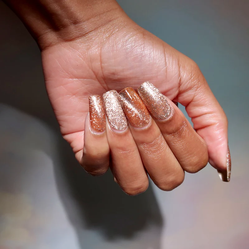 Warm brown shimmer and cinnamon tones make this the coziest nail trend of 2025. Ice Spice helped spark this through her warm-toned glam looks, and the latte-beauty trend carried it into the holiday season.